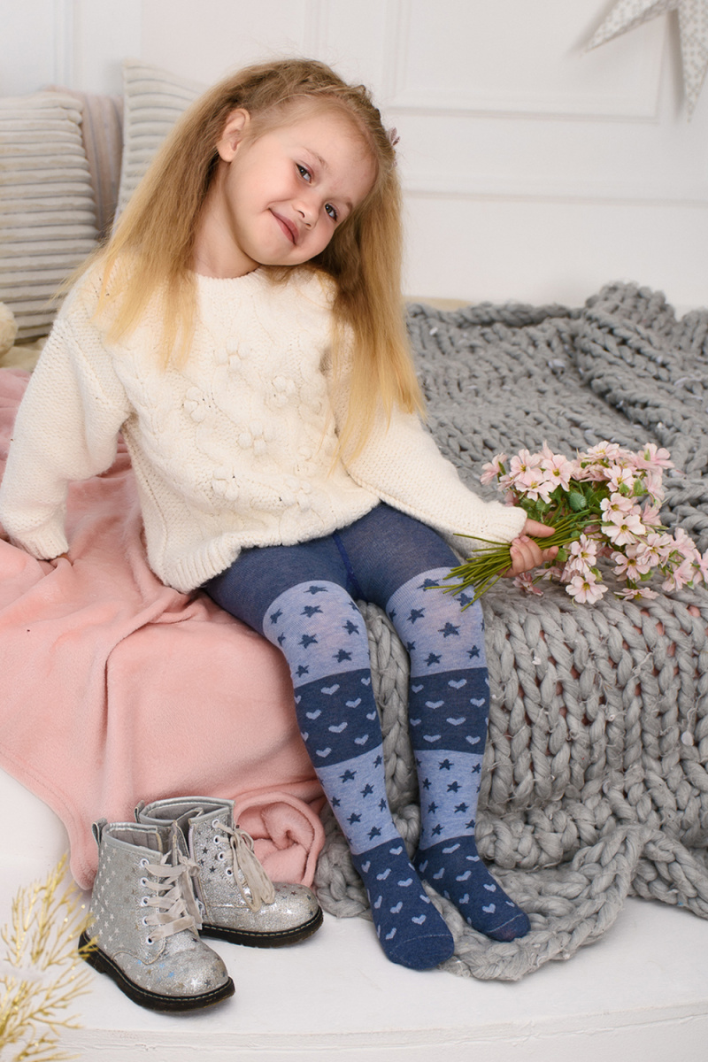 Колготки с вязаным рисунком в виде сердечек и звездочек для девочек