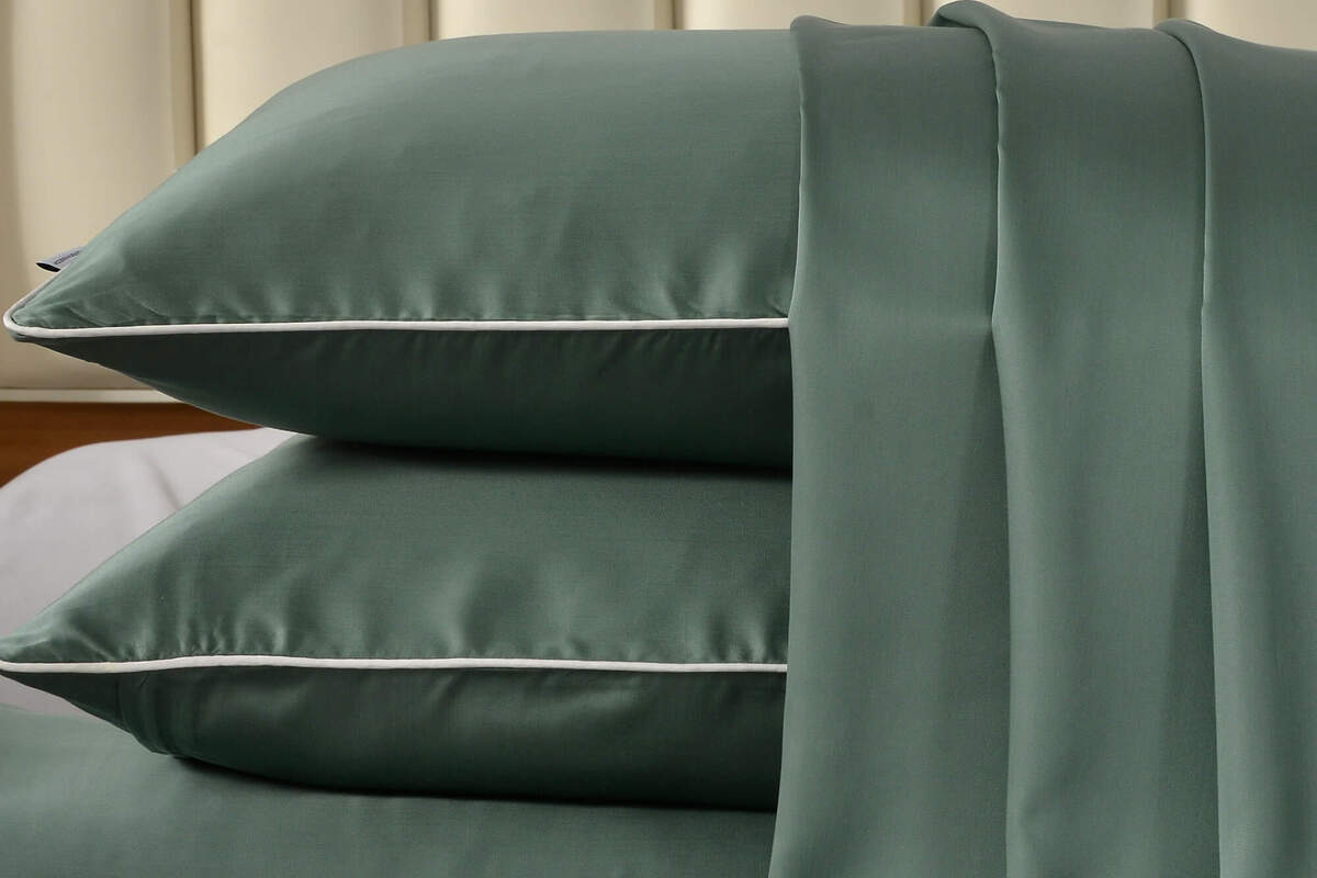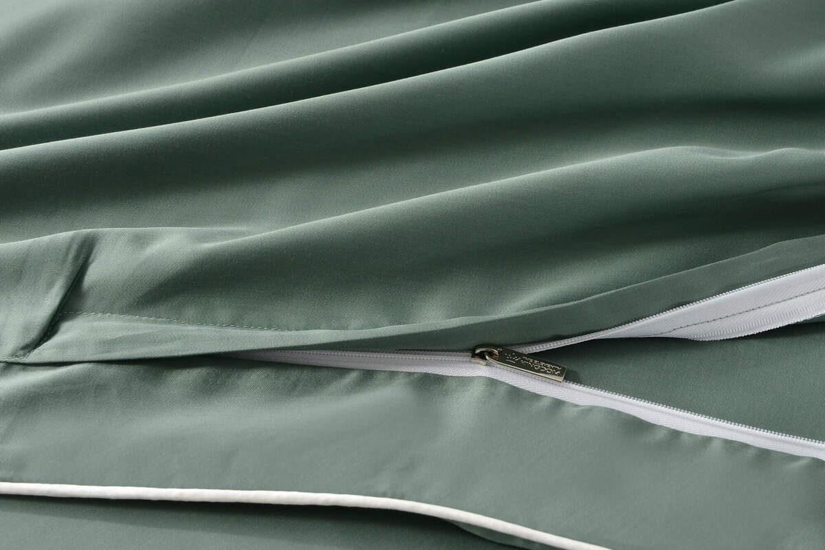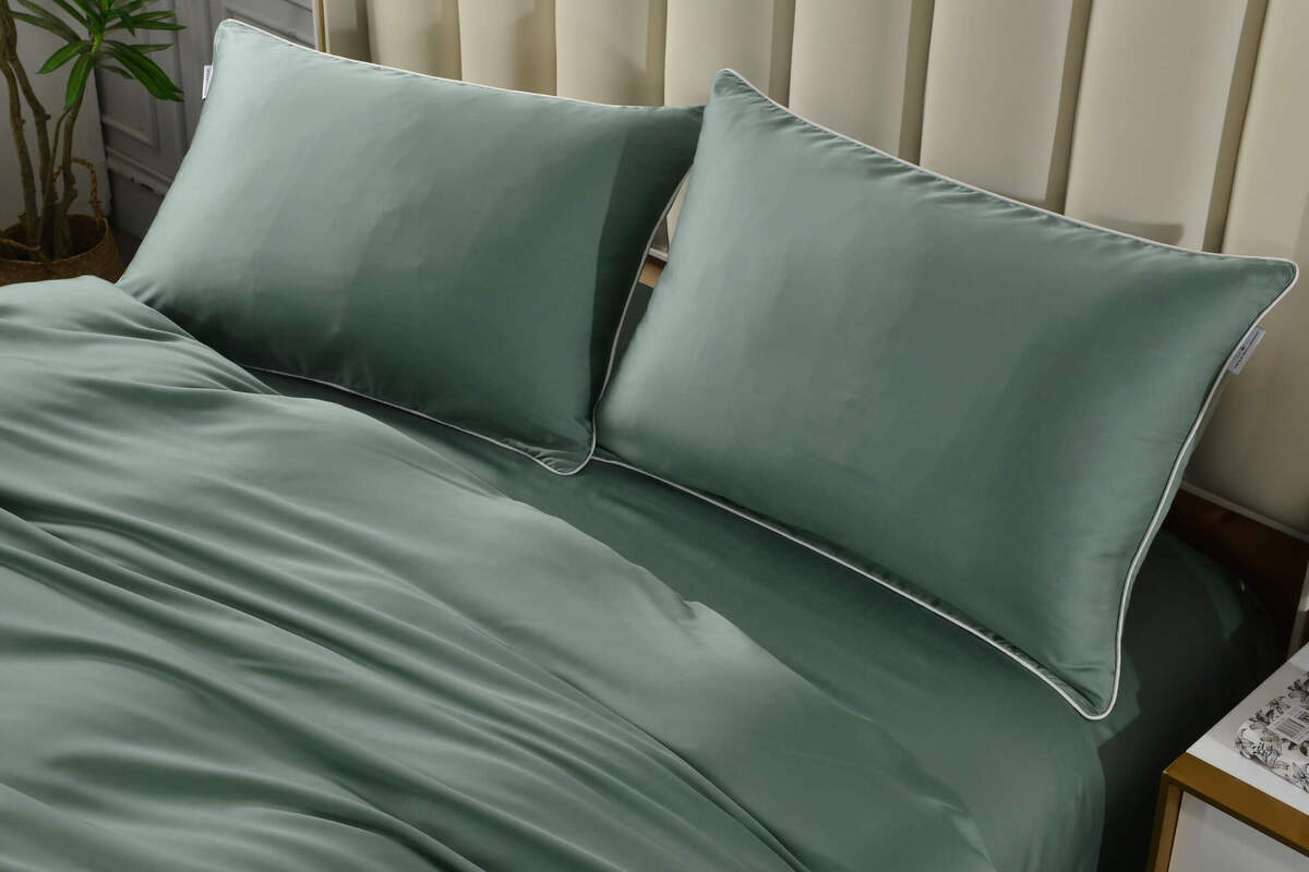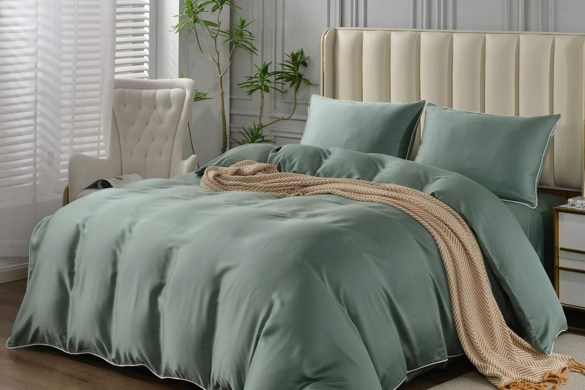 Для нашего фирменного постельного белья Elizabeth мы используем 100% тенсель (эвкалиптовое волокно) пряжи 60s, сатиновое плетение плотностью 300ТС. Комплект выполнен в однотонном дизайне с изящным белым кантом по краю пододеяльника и наволочек.