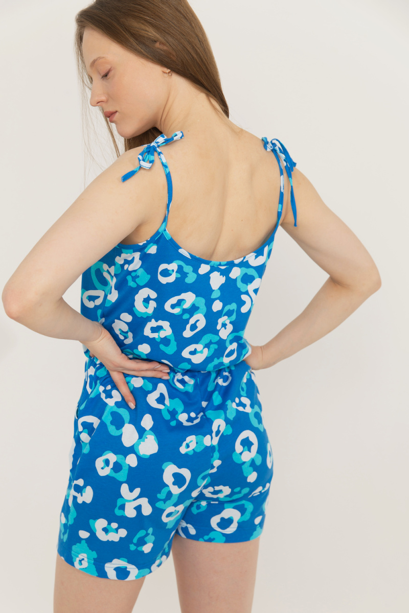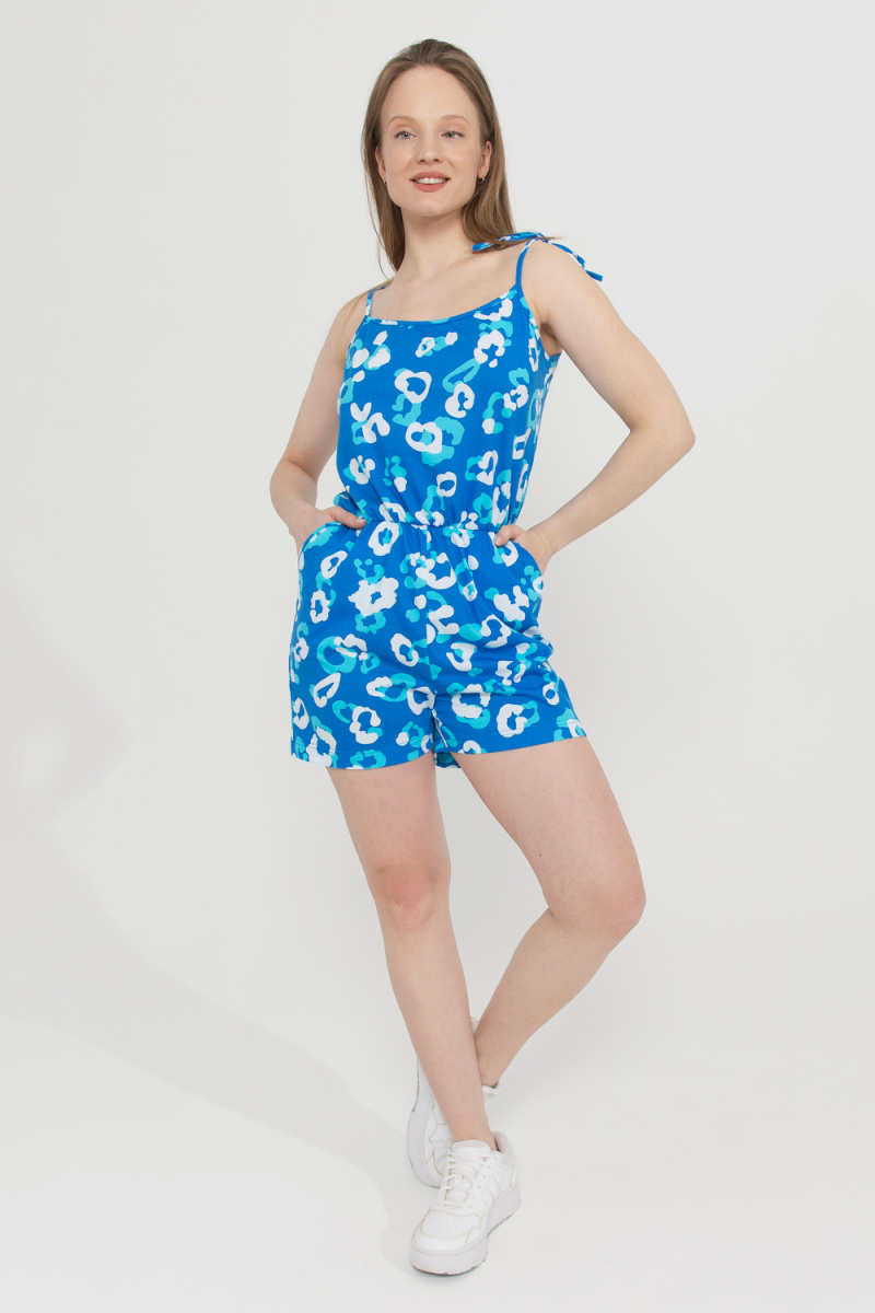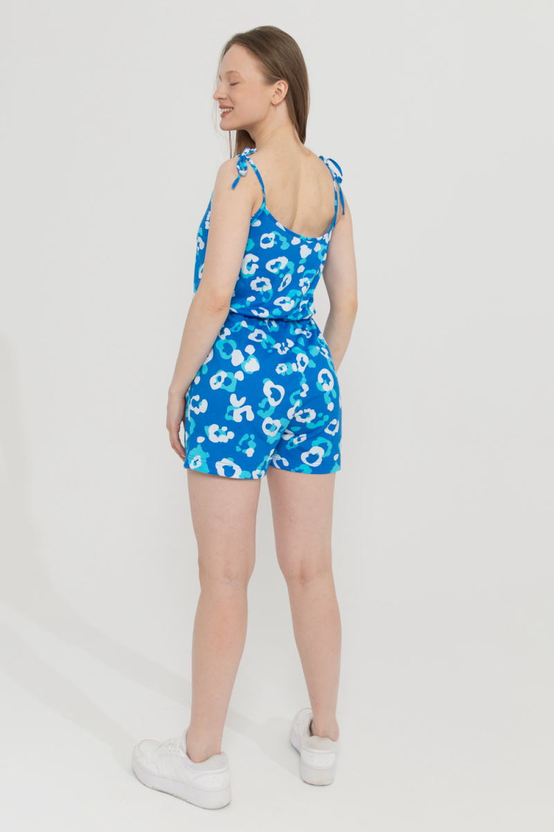 Комфортный и удобный комбинезон с шортами. Верх комбинезона выполнен в виде топа с бретельками на завязках. Шорты свободные с карманами. По линии талии для удобства вшита резинка. Комбинезон с шортами универсальный элемент летней одежды, в нём вы будете чувствовать себя комфортно в летний зной, вам будет удобно на отдыхе или проводить время на даче.