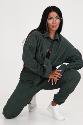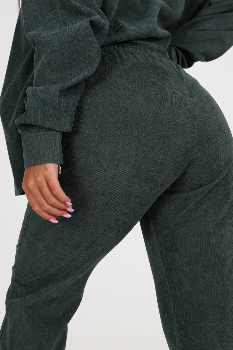 Брюки в данном костюме оснащены эластичной резинкой, что обеспечивает комфорт и идеальную посадку на любую фигуру. Изготовлены они из высококачественного велюра, который приятен на ощупь и обеспечивает долговечность изделия.