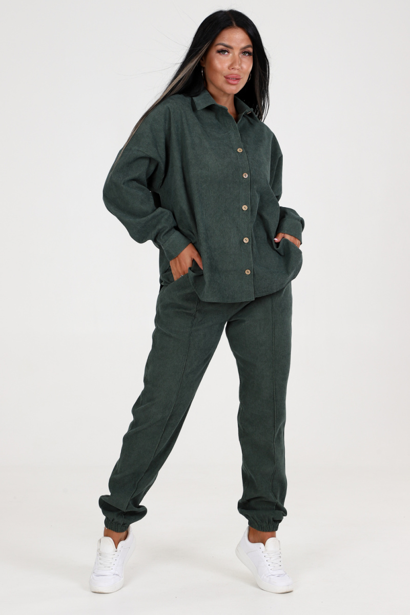 Женский костюм двойка - идеальный выбор для стильных и уверенных в себе женщин. Костюм состоит из брюк и туники рубашечного типа, которая застегивается на пуговицы. Туника украшена накладным карманом и имеет рукава на манжетах. Классический отложной воротник добавляет элегантности и выразительности к этой модели.