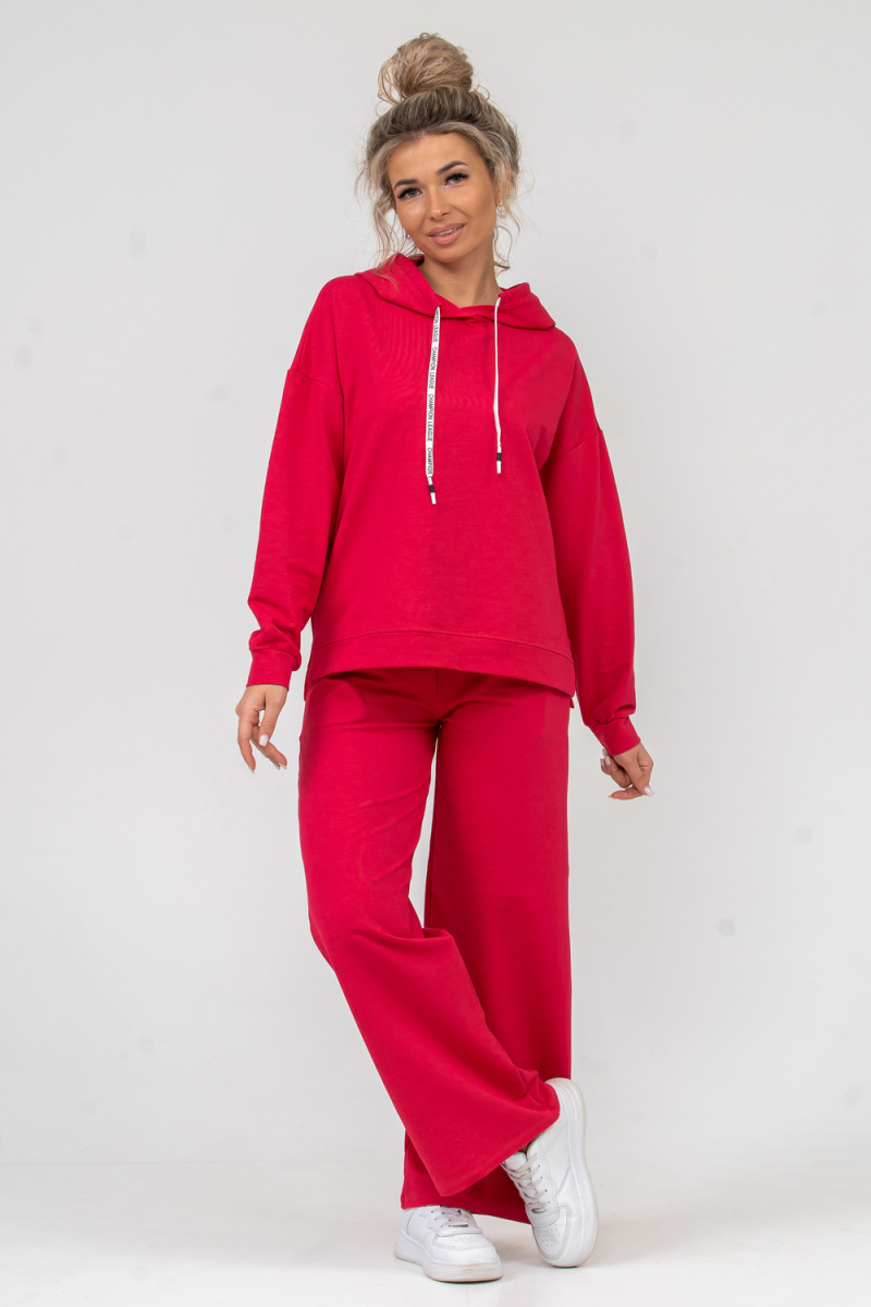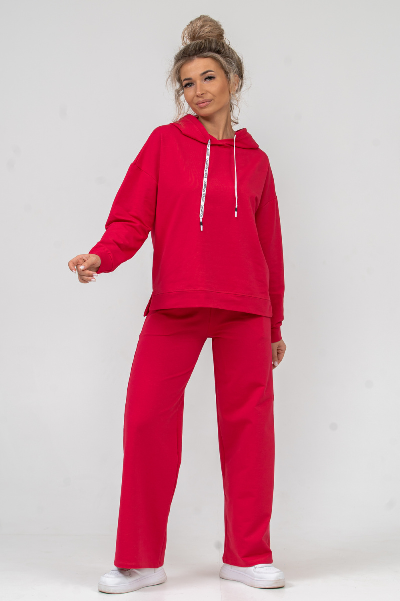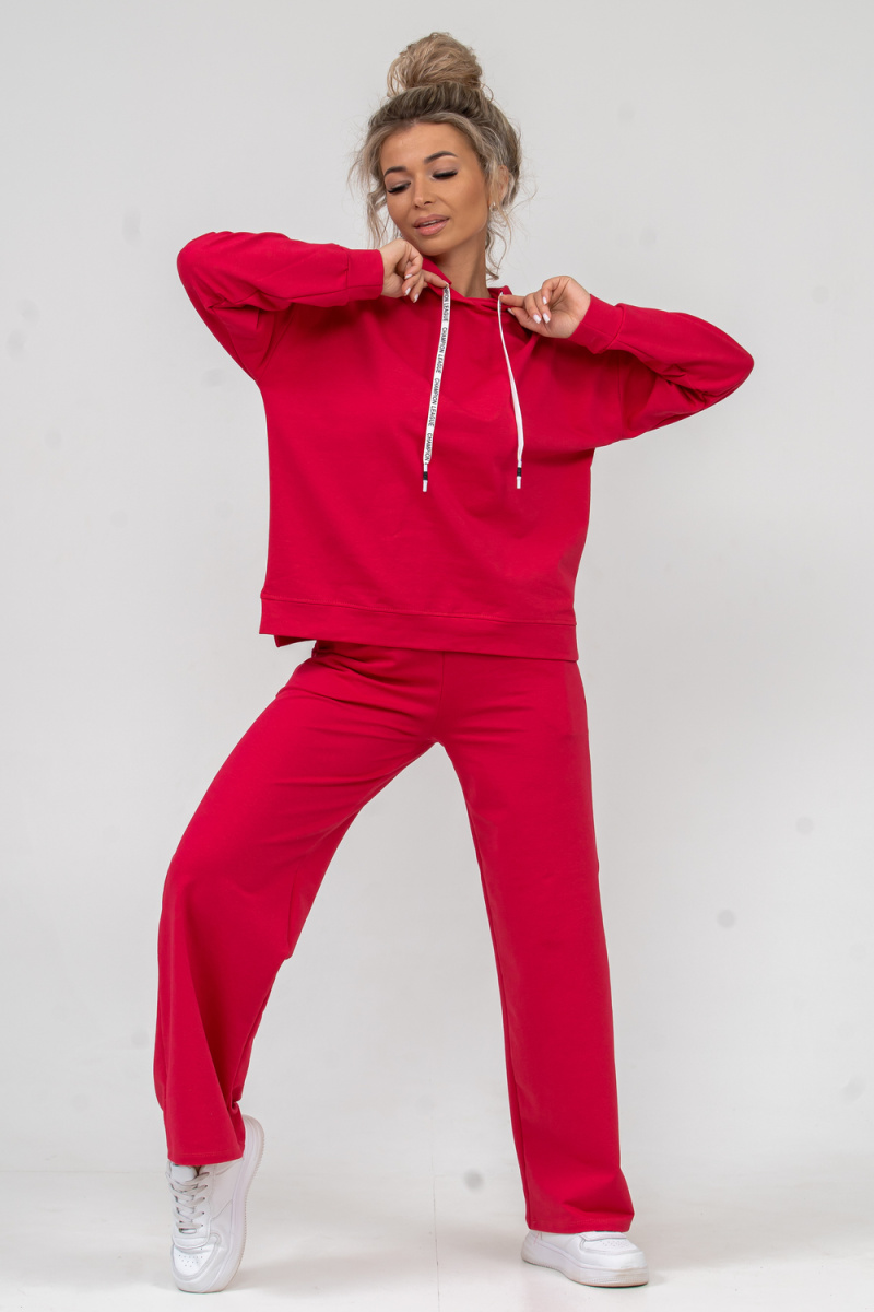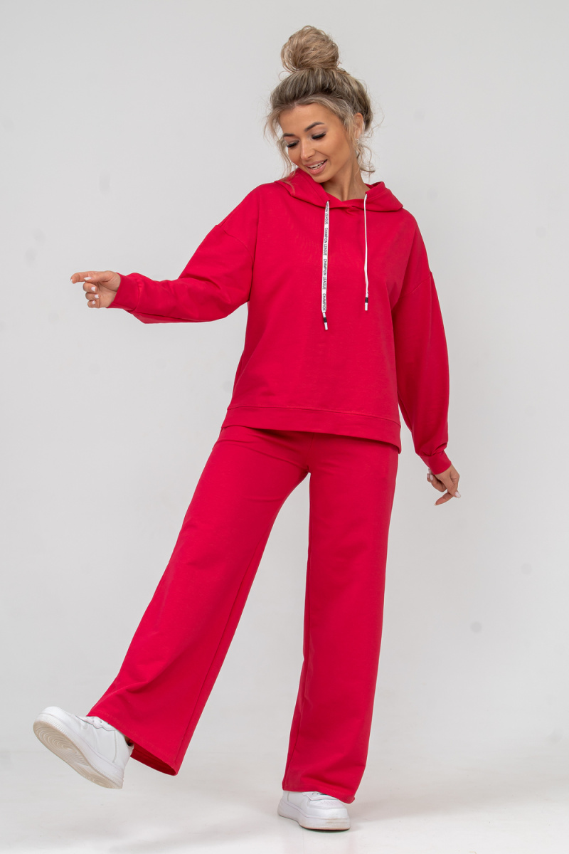 Женский костюм 2-ка выполнен из футера высокого качества с хлопком и небольшим добавлением полиэстера и лайкры, что позволяет изделию не скатываться и оставлять идеальный внешний вид на долгое время. Костюм состоит из толстовки и брюк. Изделие выполнено в стиле умеренный "oversize", модном и излюбленном тренде современности. Линия плеча спущена, а рукав и низ толстовки дополнены манжетами. Брюки палаццо с высокой посадкой, боковыми карманами, и поясом обработанным на специализированной поясной машине, делают их более удобными и комфортными. Свободный крой прекрасно будет смотреться на дамах с любой фигурой. Костюм модных расцветок - это удачный выбор для поездок в отпуск, занятия спортом, на пикник, для активного отдыха и прогулок по городу. А также гармонично сочетаться как с кроссовками, так и с туфлями, балетками или босоножками. Костюм такого плана - это то, что выделяет Вас среди других, придавая изюминку и непосредственность новомодным аутфитам.
